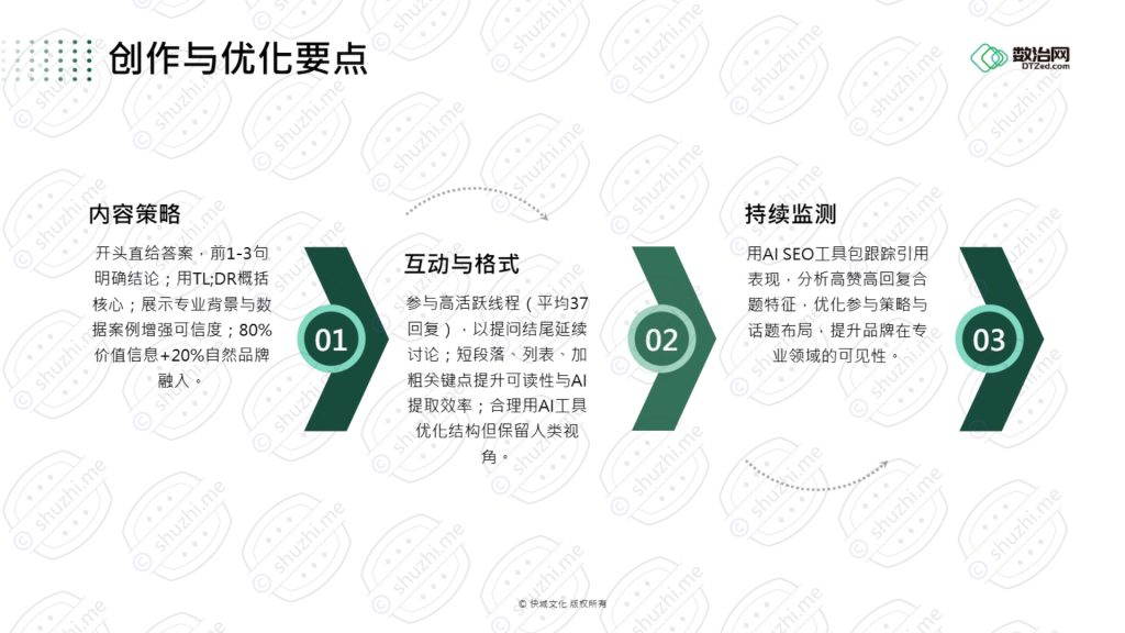 如何知道事情“做得正确”?必须建立新的衡量体系。既要关注传统的网站流量、转化率,更要建立监测AI时代新指标的体系:在各大AI平台(ChatGPT、Perplexity等)的品牌提及次数、引用来源、情感倾向;社交媒体上的话题参与度;用户社群的活跃度等。