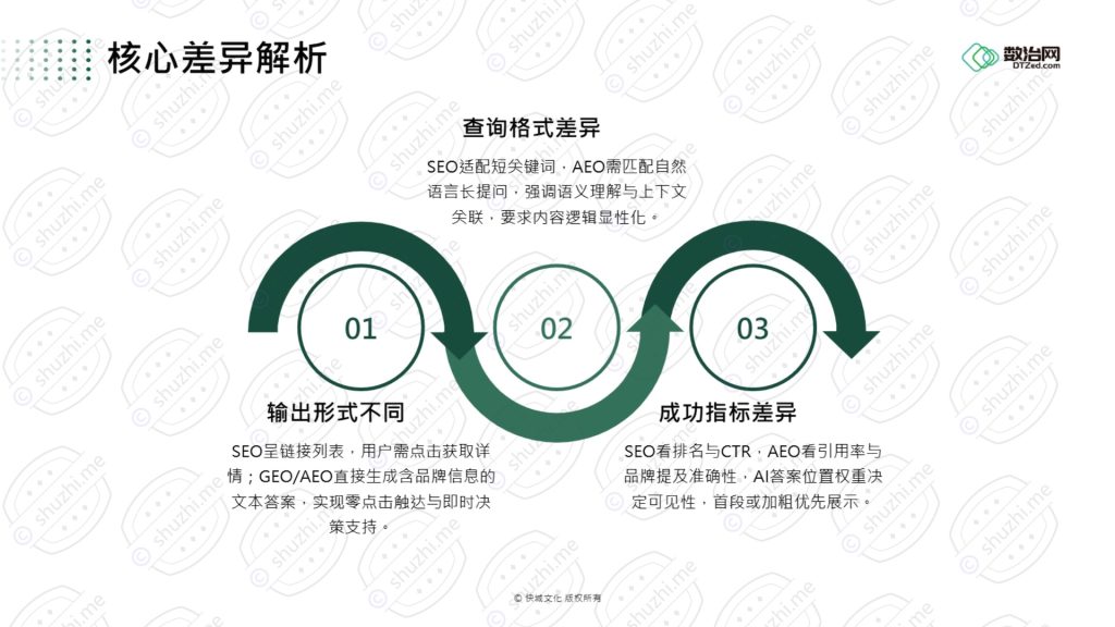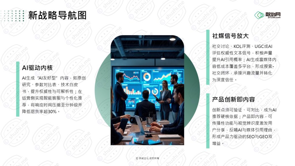 因此,“做正确的事”意味着设定一个整合目标:以权威内容为核心资产,同时确保在传统搜索结果列表中的可见性,并全力争夺在AI答案框中的“首选引用”地位。企业需要像监测搜索引擎排名一样,开始监测自己在各大AI模型中的可见度、引用率和口碑。