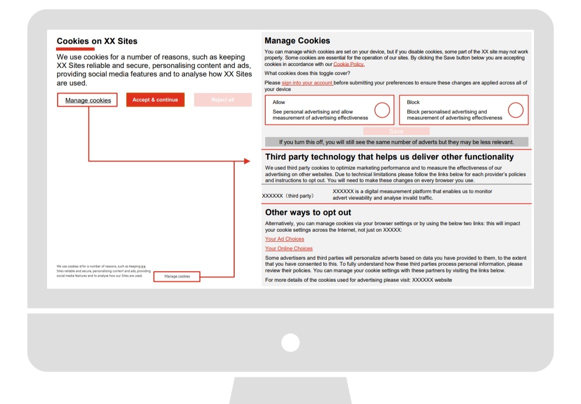 在网站上有了基本的横幅之后,监控同意率也很重要。如果选择同意的人数较少,可以选择一些第三方平台对同意率进行一些测试。通过A/B测试、实验,和对模板设计、布局、文本、行动呼吁按钮(CTA)、颜色等简单测试,确定哪些变化产生了最高的转化率。根据一些同意管理平台的实践,同意率在不同行业之间变化很大。
