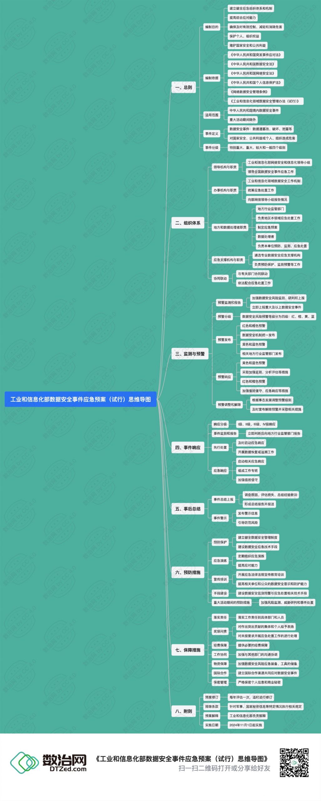 为帮助大家更好地全面了解预案,数治网小编特别生成思维导图,获取高清大图和附件请关注我们的微信公众号“idtzed”,在对话框内发送“241105”: