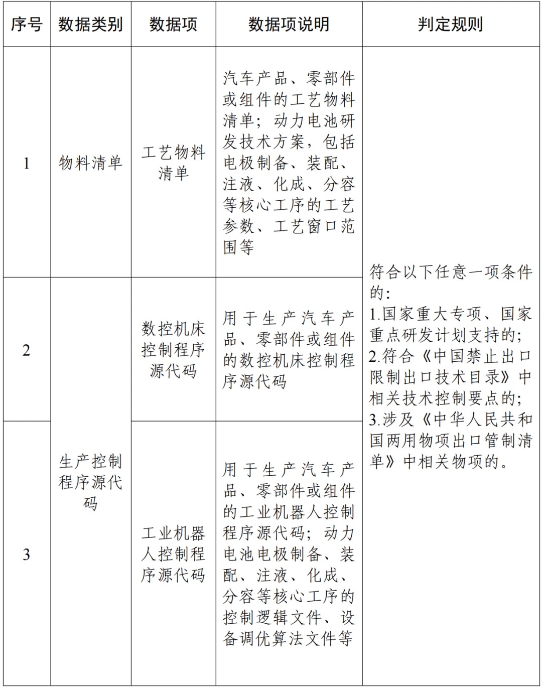 - 生产数据:生产线上数控机床和工业机器人的控制程序源代码,如果涉及国家支持的重大专项技术,则受到管制。