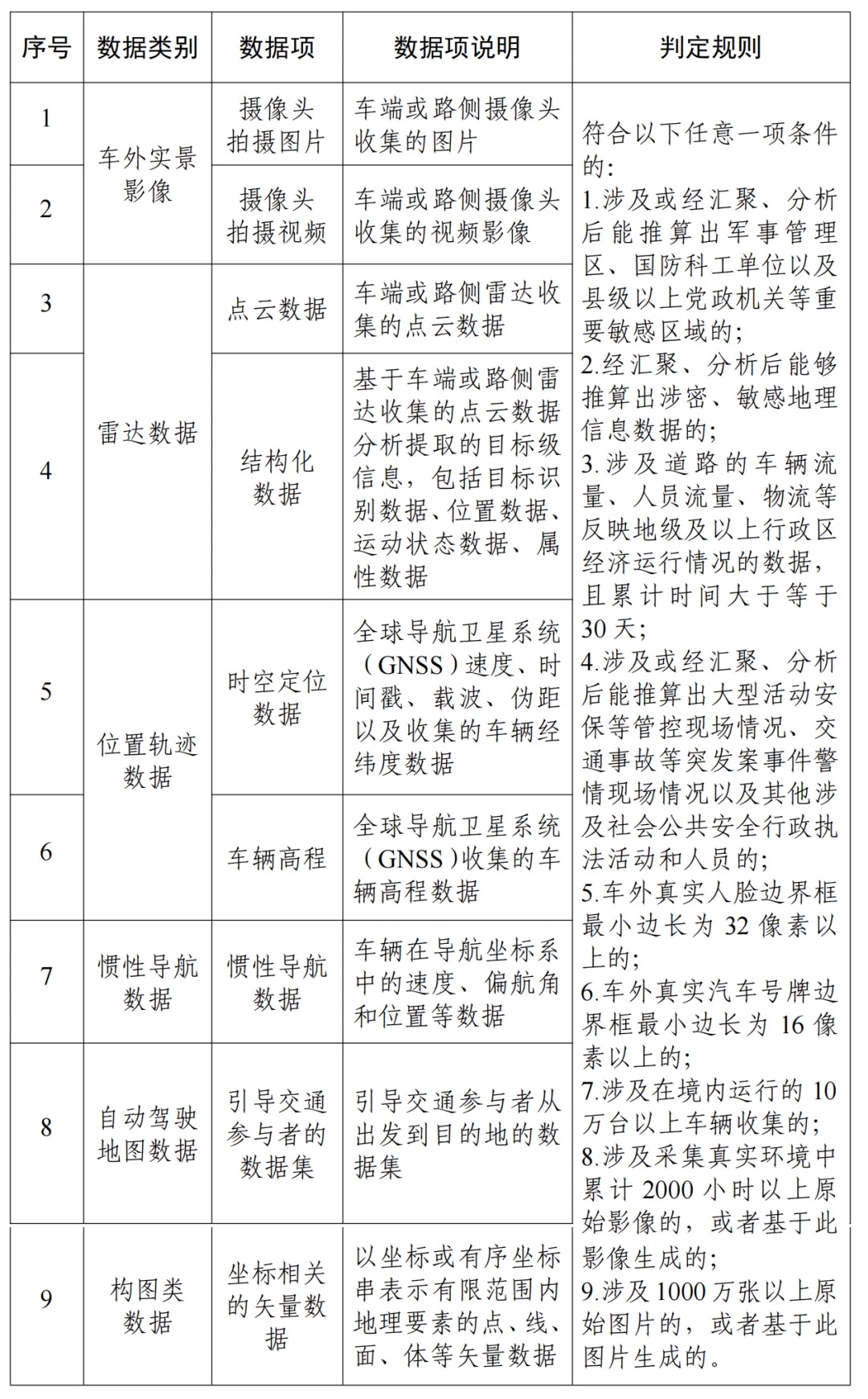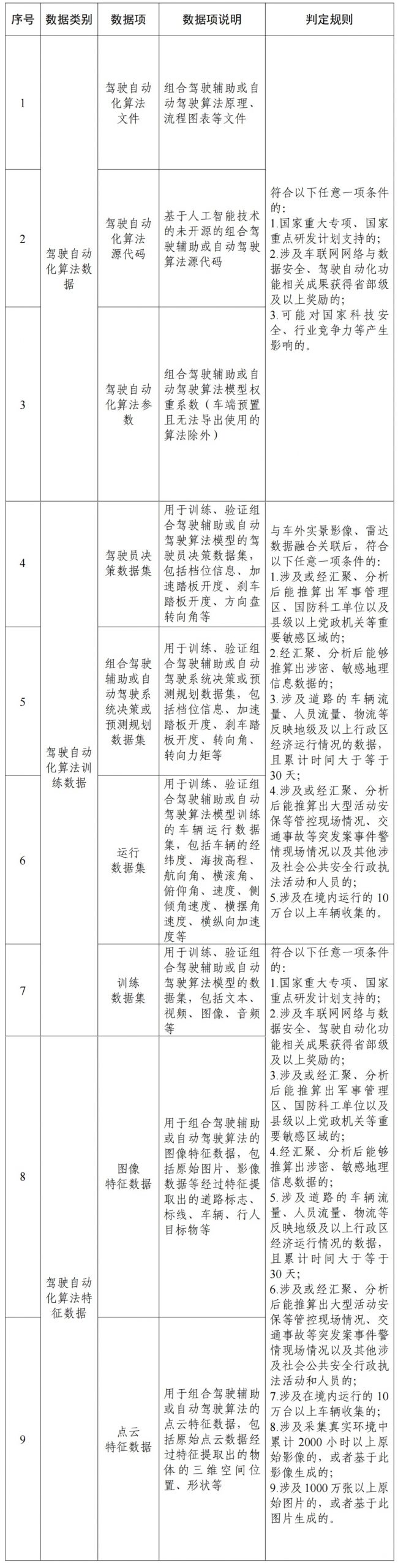 - 环境感知数据:摄像头、雷达收集的车外影像和点云数据,若包含敏感区域影像或达到特定数量,即被判定为重要数据。