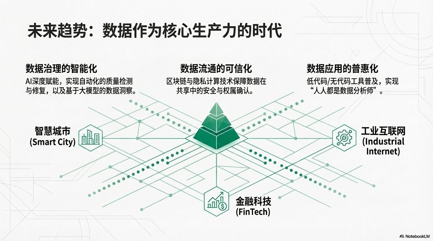 遵循“五全”法则,数据才能从杂乱无章的“资源”,逐步转化为定义清晰的“资产”,并最终成为可在内外部流通、创造新业务的“生产要素”。例如,某商业银行通过整合治理客户与交易数据,将其转化为精准的营销模型和风险管理工具,直接创造了业务价值。